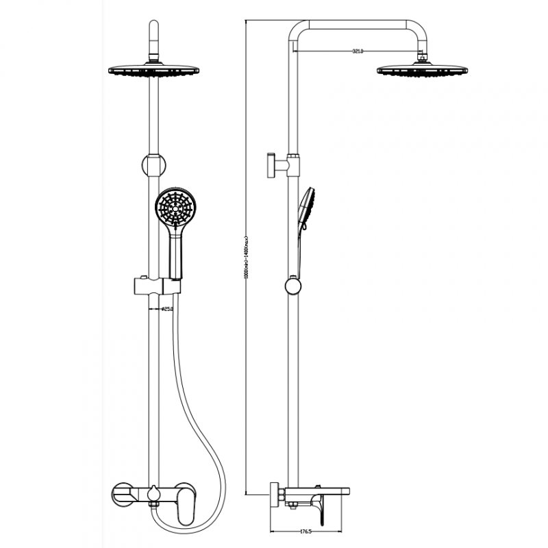 Смеситель; верхний душ; ручной душ; душевая штанга; душевой шланг; |
