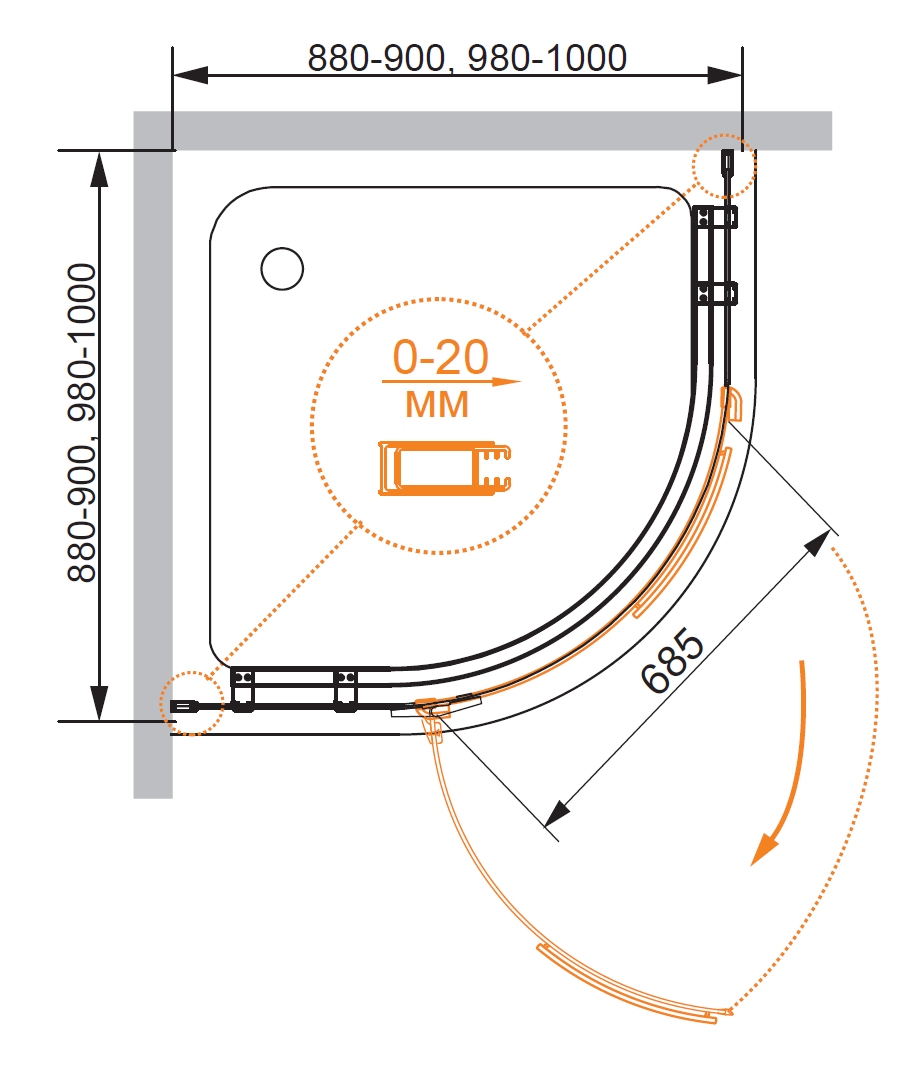 Напольный, на поддон, пристенный в угол |