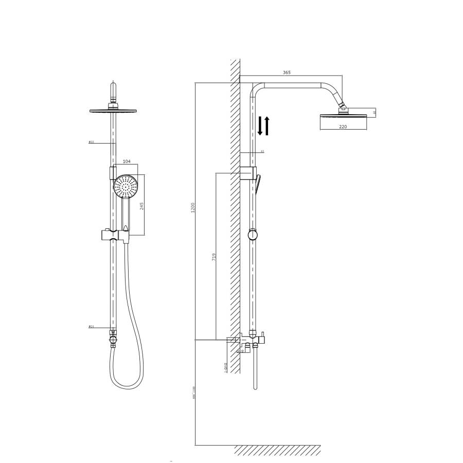 Размер верхнего душа мм.