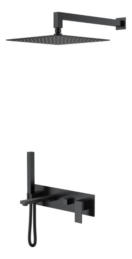 Смеситель (внешняя и внутренняя часть). Кронштейн для верхнего душа. Верхний душ. Ручная лейка. Душевой шланг. Комплект креплений. |