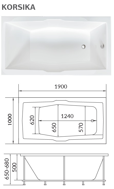 - удлиненная купель в области ног - комфортное расположение тела в ванне;