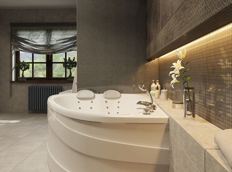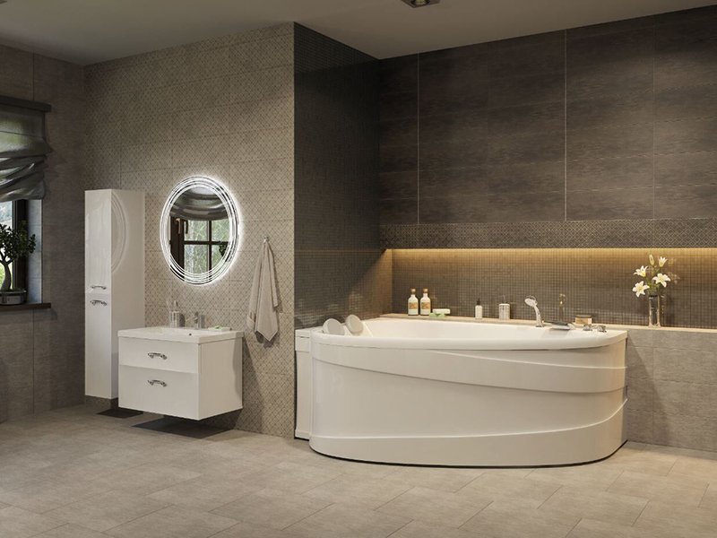 - мягкий обтекаемый дизайн - эстетика интерьера ванной комнаты;