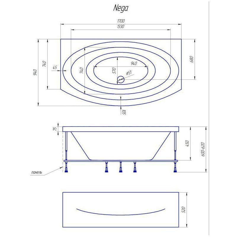 - большая глубина - возможность полностью погрузиться в теплую воду, меньше брызг;
