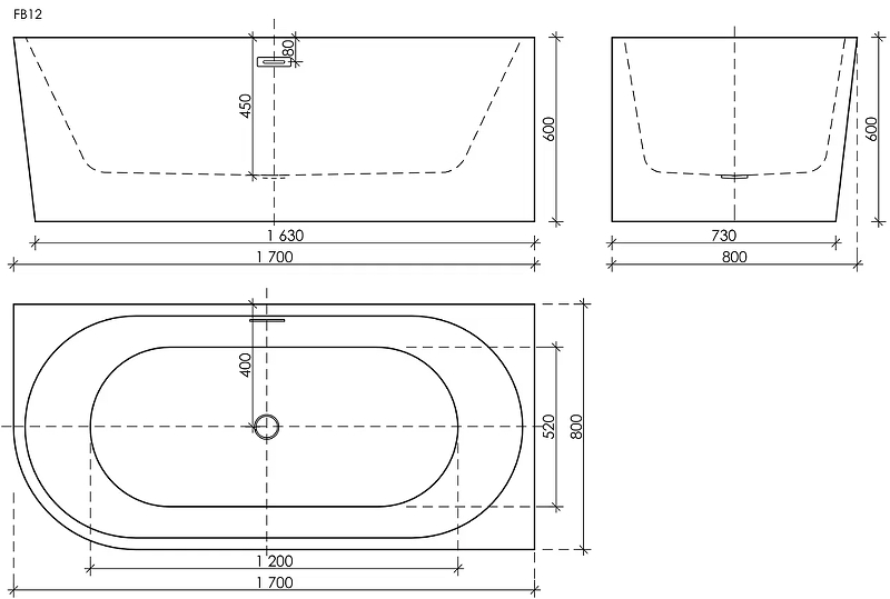 Ванна с экраном, алюминиевая рама, слив-перелив интегрированный, донный клапан "Click-Clack", сифон |
