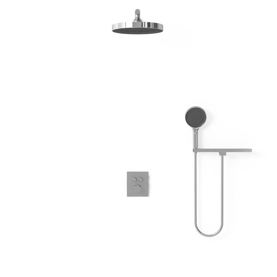 Верхний душ, полка с изливом и держателем ручного душа, ручной душ, смеситель со встраиваемой частью |