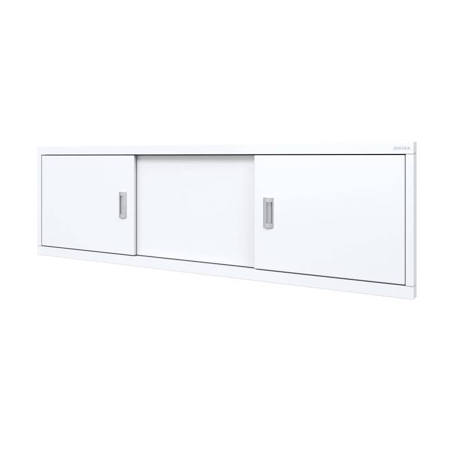 Конструкция имеет три подвижные раздвижные двери из МДФ, покрытых высокоглянцевой белой пленкой. Две боковые дверцы с врезными хромированными металлическими ручками.