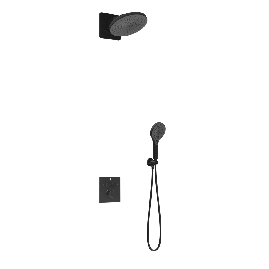 Верхний душ Inspire VSHD-3I5CMB, черный Держатель ручного душа VSC-31MB с подводом воды, черный Ручной душ с шлангом Inspire VSHN-3I1HMB, черный Встраиваемый смеситель для душа VSCV-321T-MMB двухфункциональный, термостатический, черный |