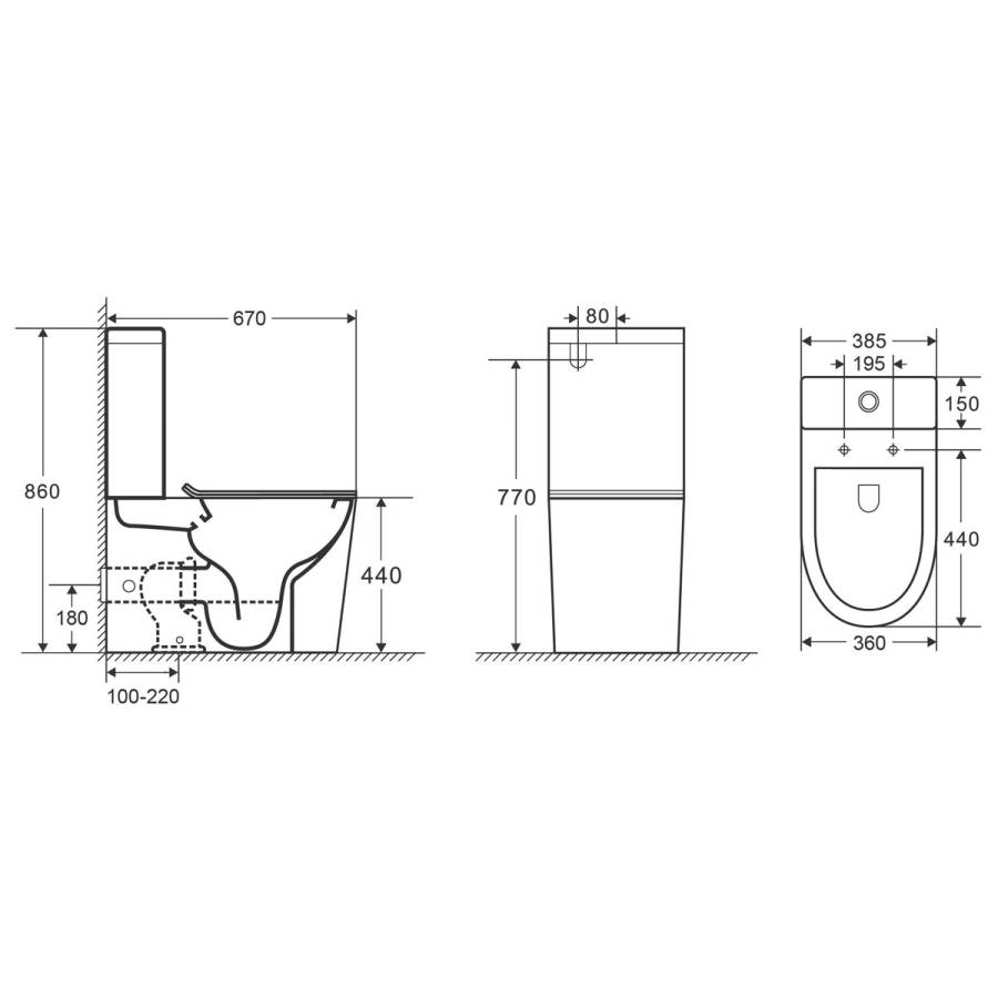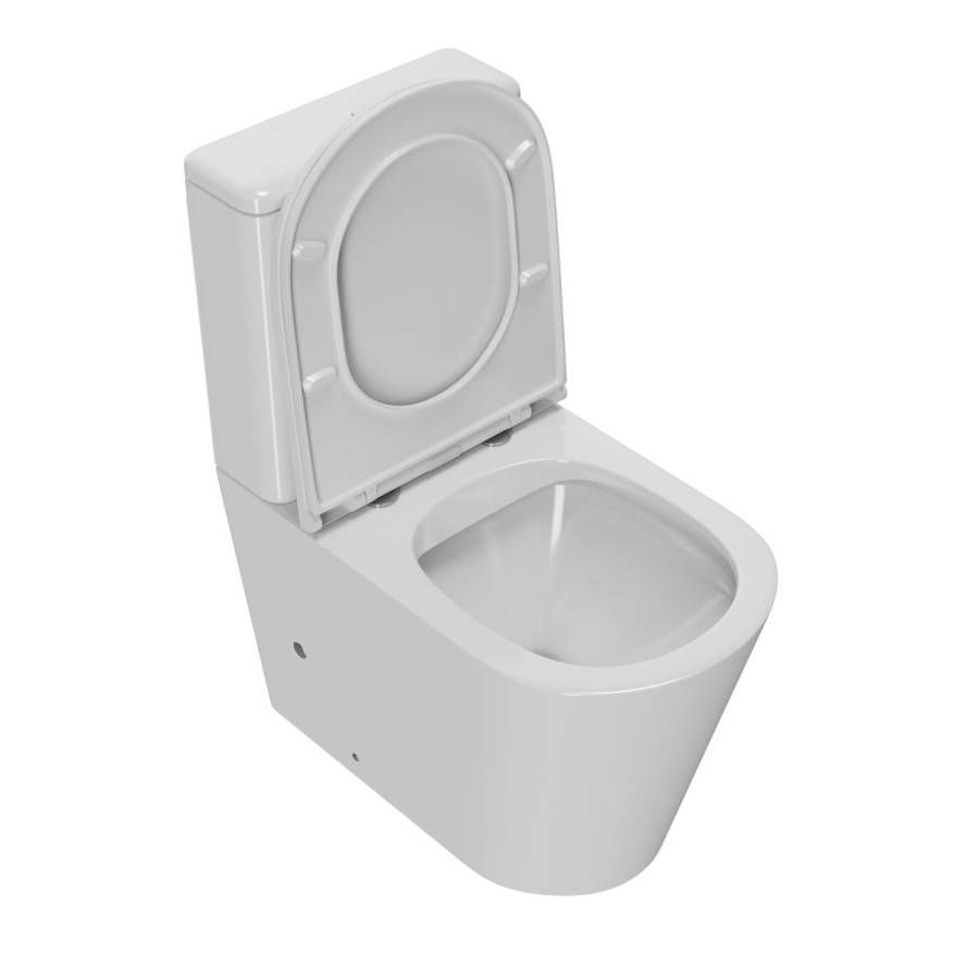 Унитаз керамический безободковый; бачок смывной керамический с нижним подводом воды; двухуровневый спускной механизм; сиденье для унитаза из дюропласта легкосъемное с функцией плавного закрывания; монтажный комплект; инструкция/гарантийный талон |