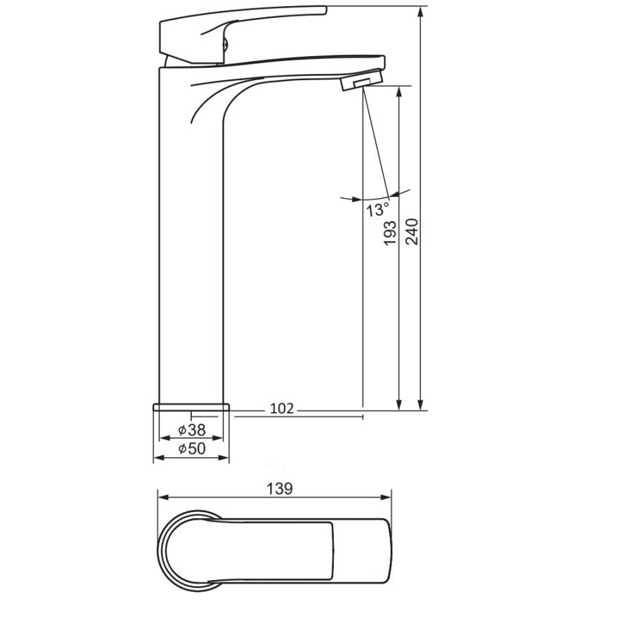 Высота излива см./мм.