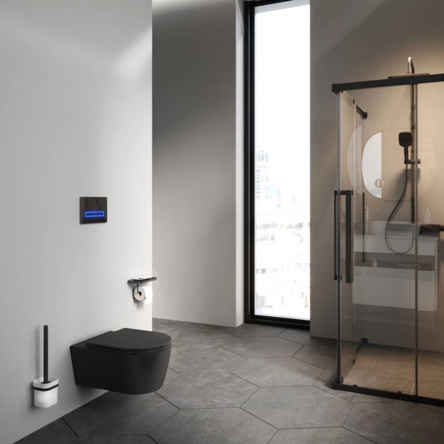 Лаконичный дизайн унитаза разработан итальянским дизайнерским агентством DanelonMeroni. Идеальный матовый черный цвет делает продукт идеально подходящим для современного интерьера. FlashClean - новое поколение безободковых унитазов без использования пластика: 100 % гигиеничности 0 % брызг._x000D_