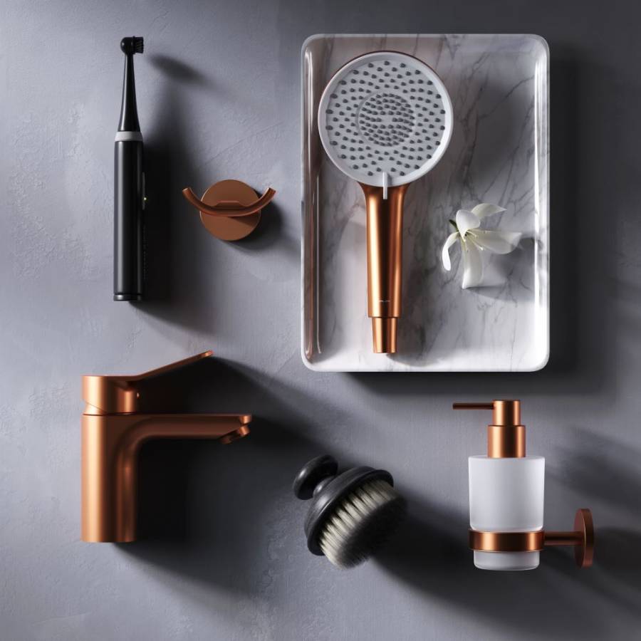 Настоящее произведение ювелирного искусства в вашей ванной комнате: нежный оттенок розового золота получается методом вакуумного напыления смеси 24-каратного золота серебра и меди в процессе которого микрочастицы сплава образуют стойкое соединений с латунной основой. _x000D_