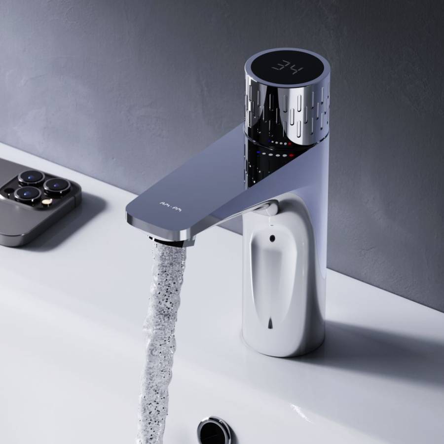 Смеситель для раковины Gem с индикацией температуры - это сочетание красоты и функциональности в вашей ванной комнате._x000D_
