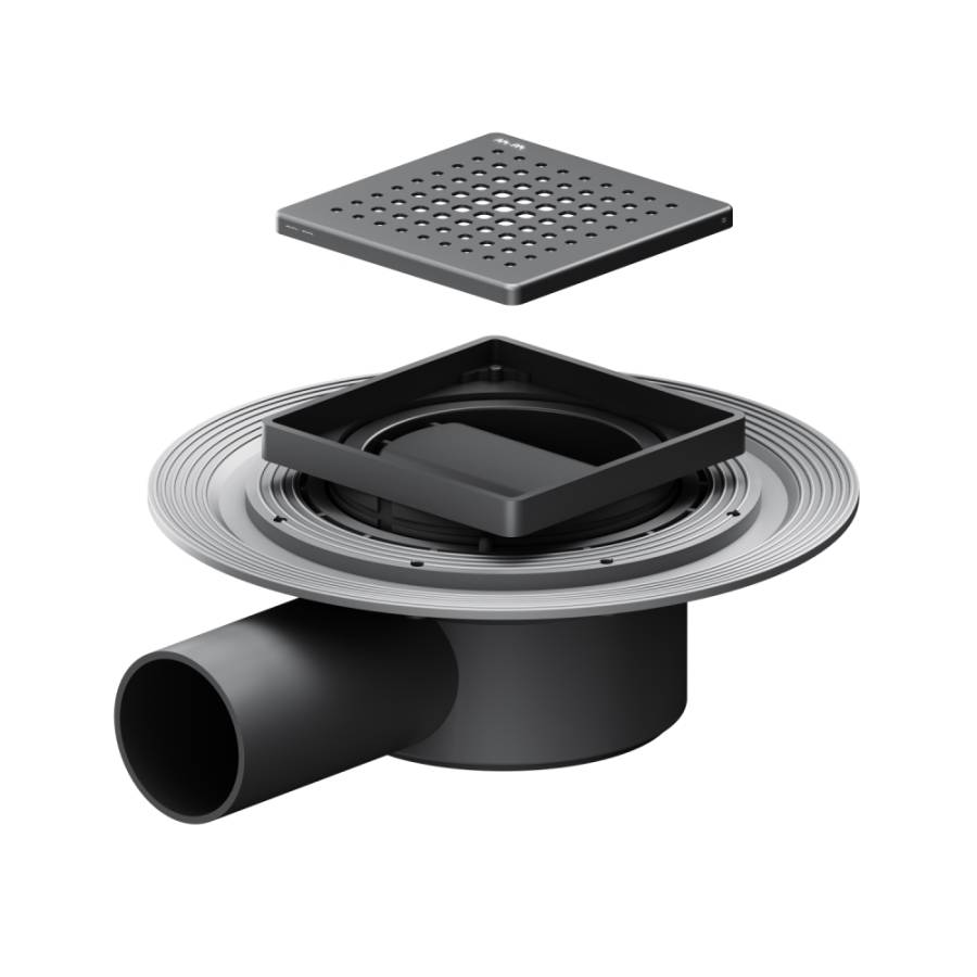 Выход изделия на 50 мм. Размер трапа 10 см. Дизайн продукта выполнен в элегантном матовом черном цвете. ""