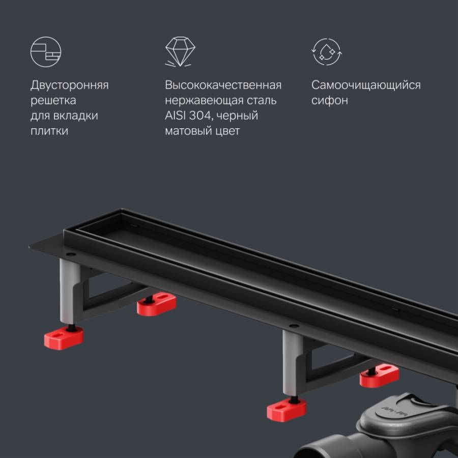 Продукт обладает низкой высотой монтажа и возможностью регулировки что предполагает экономию бюджета при заливке пола. Трап выполнен из высококачественной нержавеющей стали марки AISI 304. Выход разработан на два диаметра: 40 и 50 мм которые выбираются в процессе монтажа._x000D_