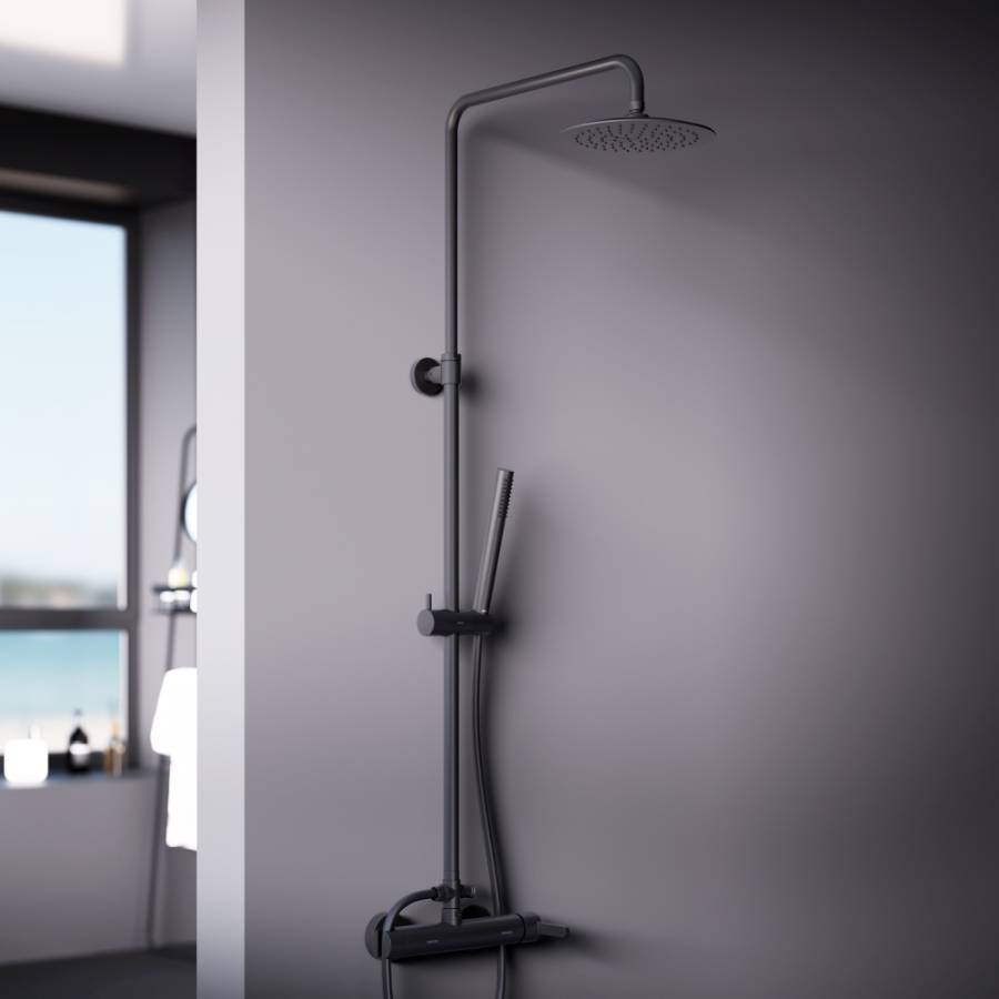 Инновационное PVD-покрытие гарантирует чрезвычайную прочность душевой системы. Матово-черная поверхность не выцветает с годами и устойчива к механическим повреждениям загрязнениям и отпечаткам пальцев. ""