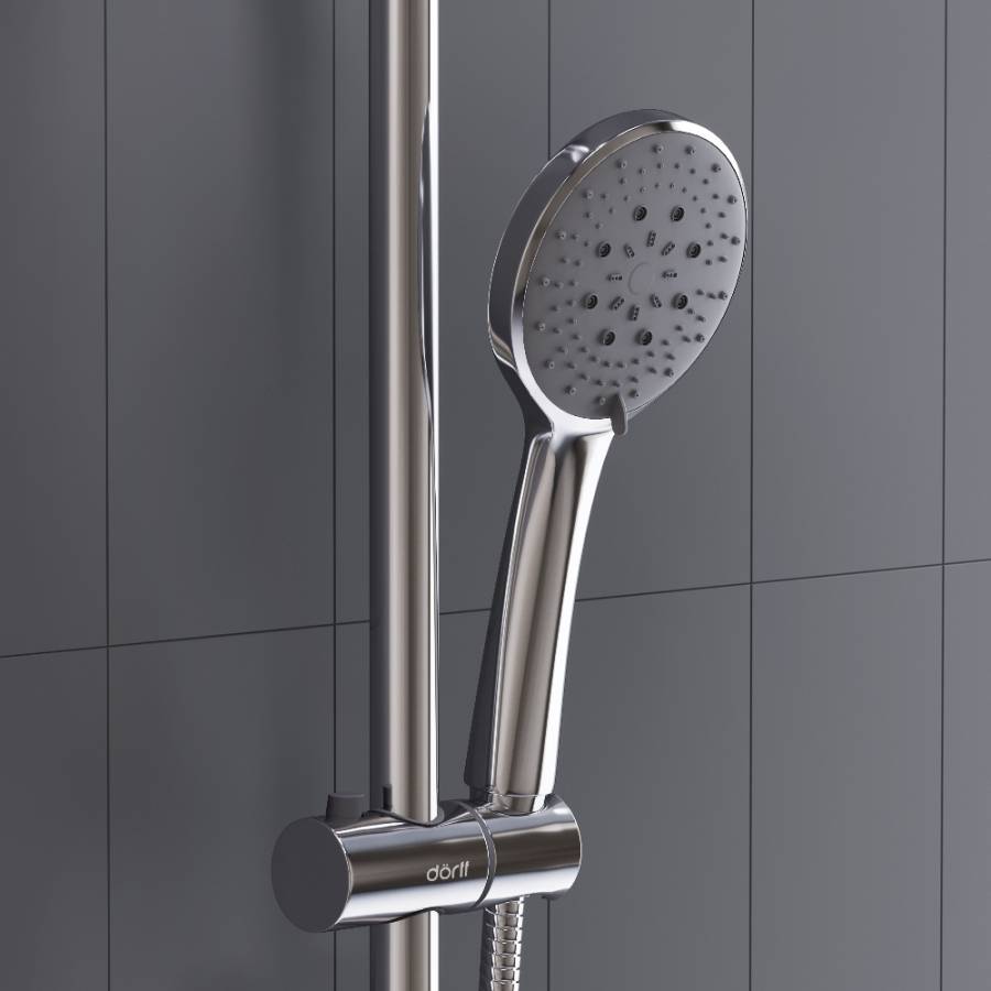 Душевая система Futura с тропическим душем ручным душем с 3 функциями и длинным шлангом в 1500 мм - просто находка в своем сегменте. А стойка с возможностью регулировки по высоте станет приятным бонусом для тех кто ценит эргономичность и функциональность. _x000D_