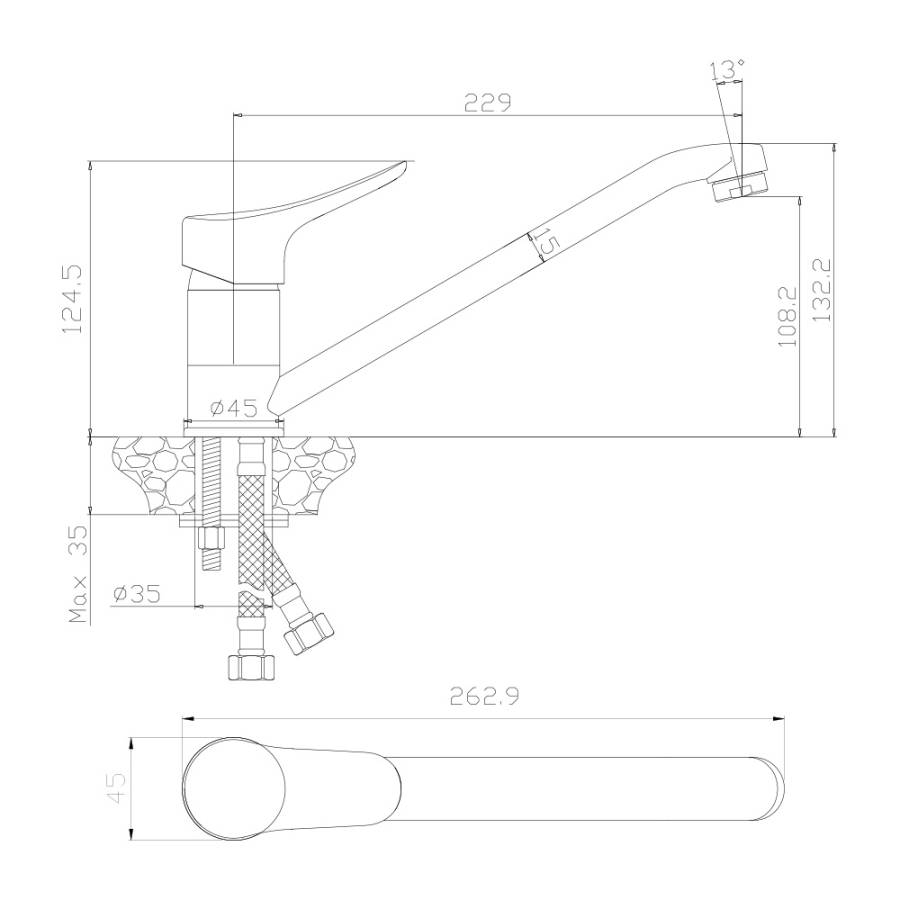 Высота излива см./мм.