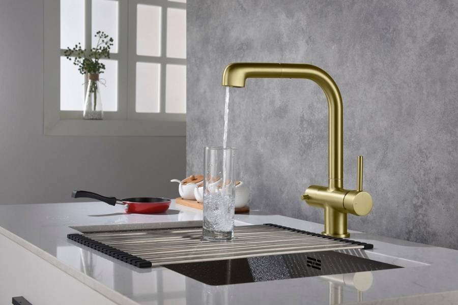 С подключением фильтра и выдвижной лейкой |