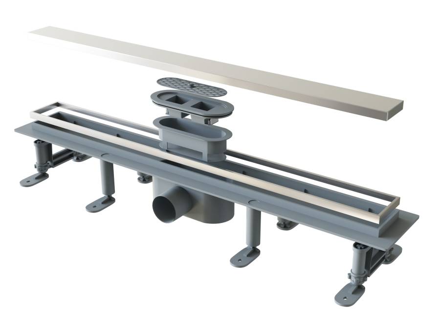 Оснащен практичной двухсторонней крышкой-решеткой из нержавеющей стали AIS 304, позволяющей укладывать плитку, создавая эффект невидимого трапа.