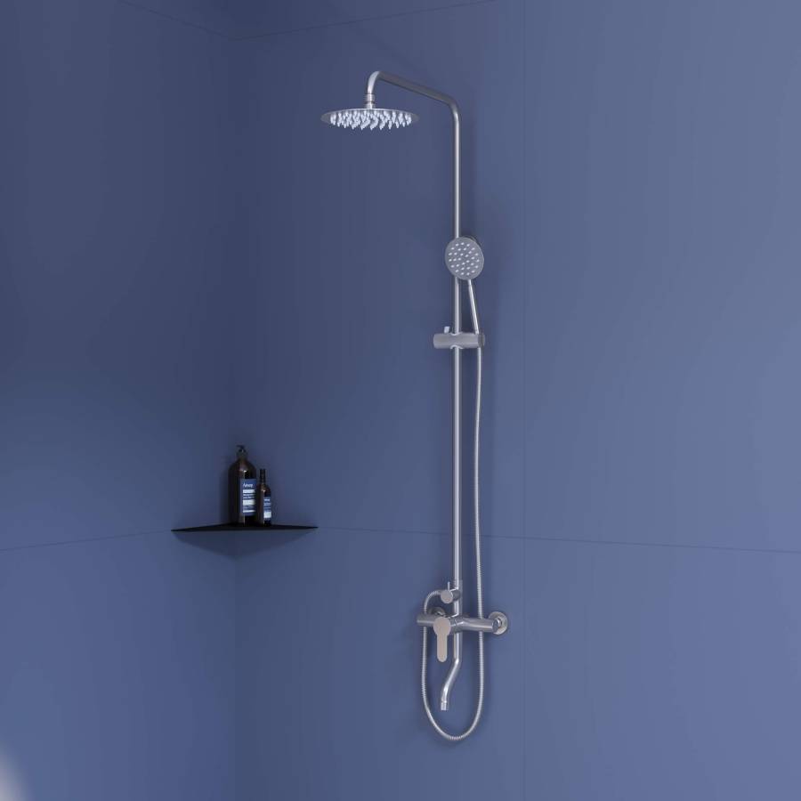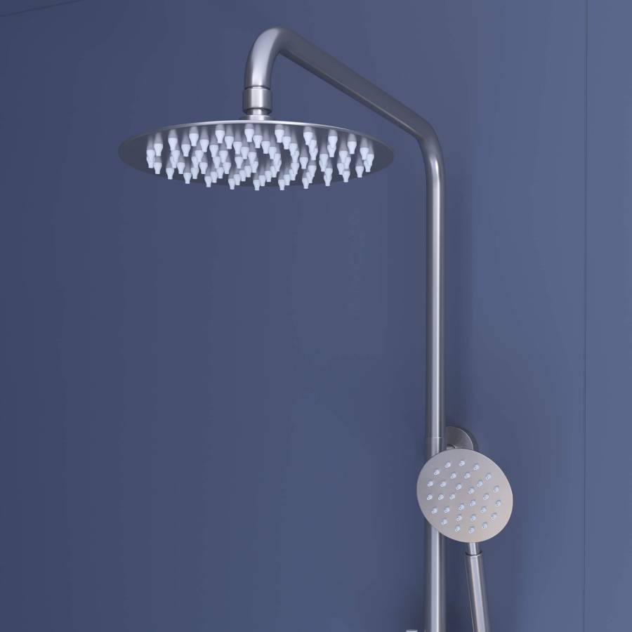 Головной душ выполнен из нержавеющей стали AISI 304 оснащён со шарнирным креплением, что позволяет выбрать необходимый угол направления воды;