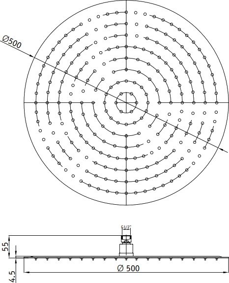 Размер душа: 250 мм — оптимальный для создания равномерного потока воды.