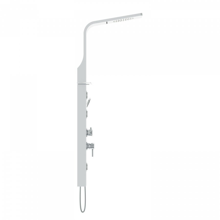 Душевая панель, Верхний душ, Лейка, Держатель для душа, Шланг, Смеситель, Полочка, Комплект гидромассажных форсунок |