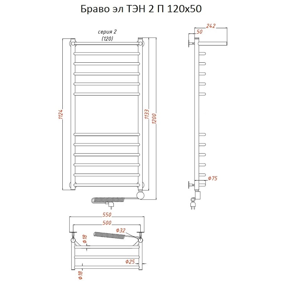 ТЭН 300 Вт, Бытовой антифриз, Заглушка с воздухоотводчиком |