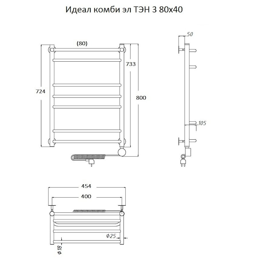 ТЭН 300 Вт, Бытовой антифриз, Заглушка с воздухоотводчиком |