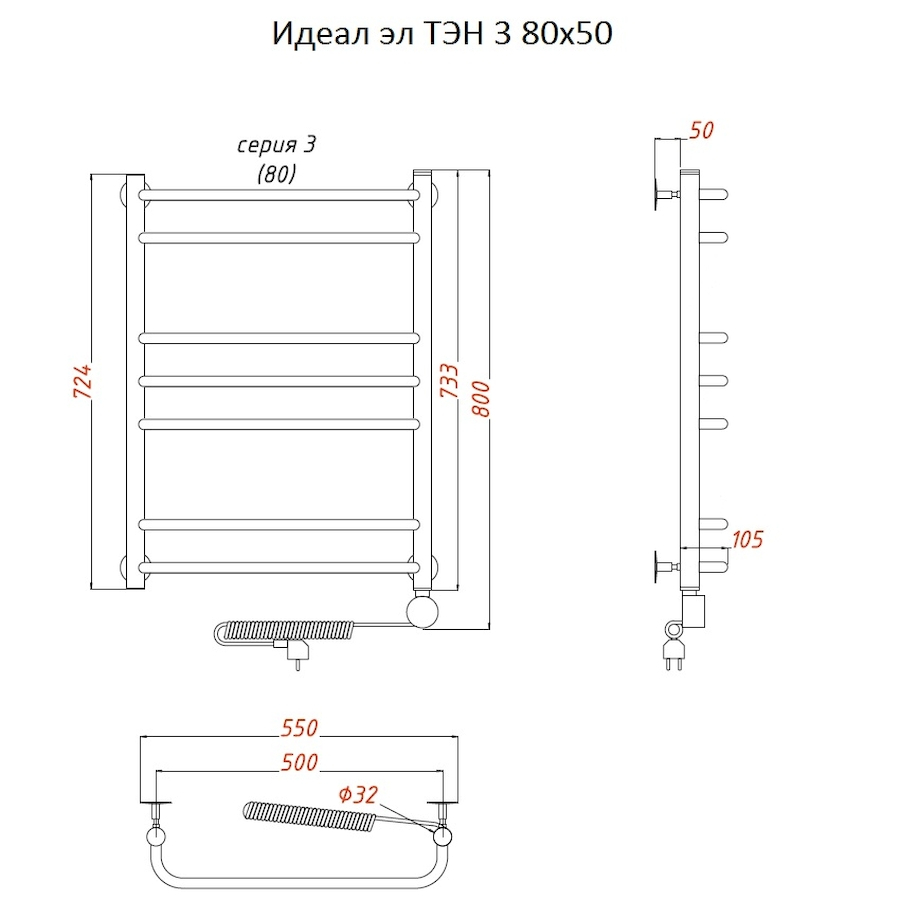 ТЭН 300 Вт, Бытовой антифриз, Заглушка с воздухоотводчиком |