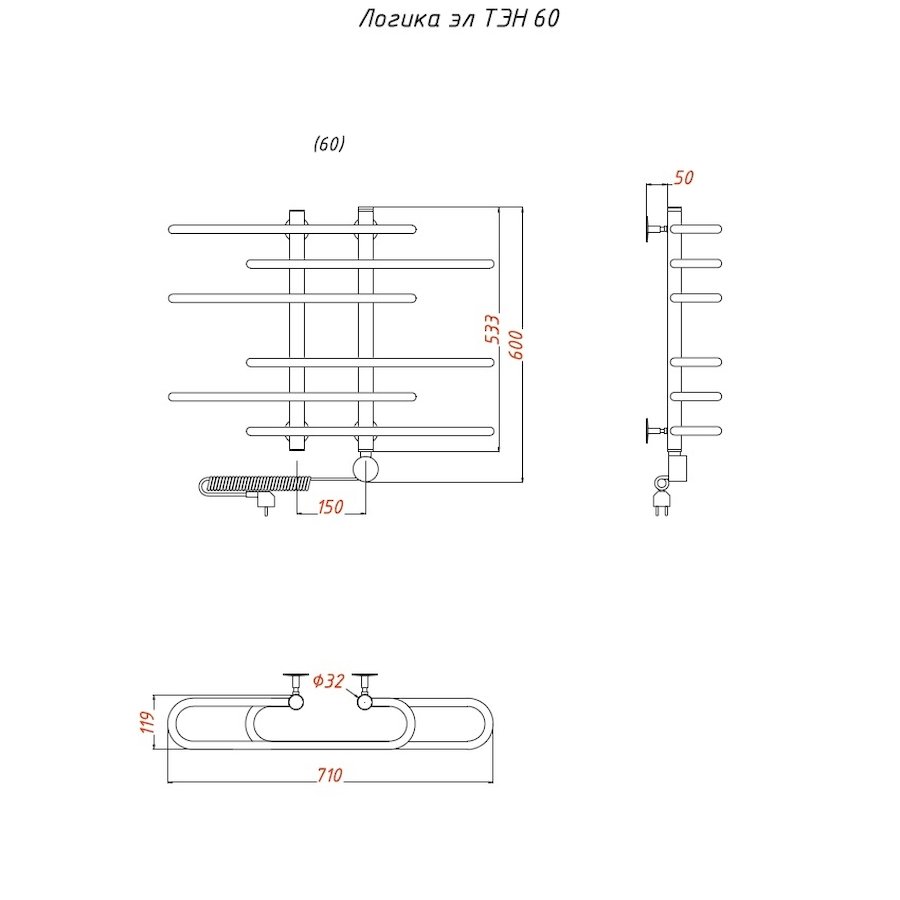 Электропровод с вилкой; Направление подключения: Левое, Правое |