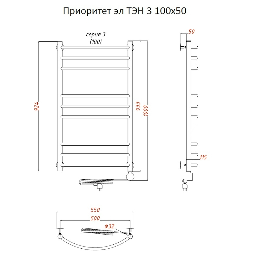 ТЭН 300 Вт, Бытовой антифриз, Заглушка с воздухоотводчиком |