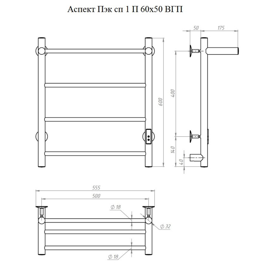 Электропровод с вилкой. Направление подключения: Правое (скрытое) |