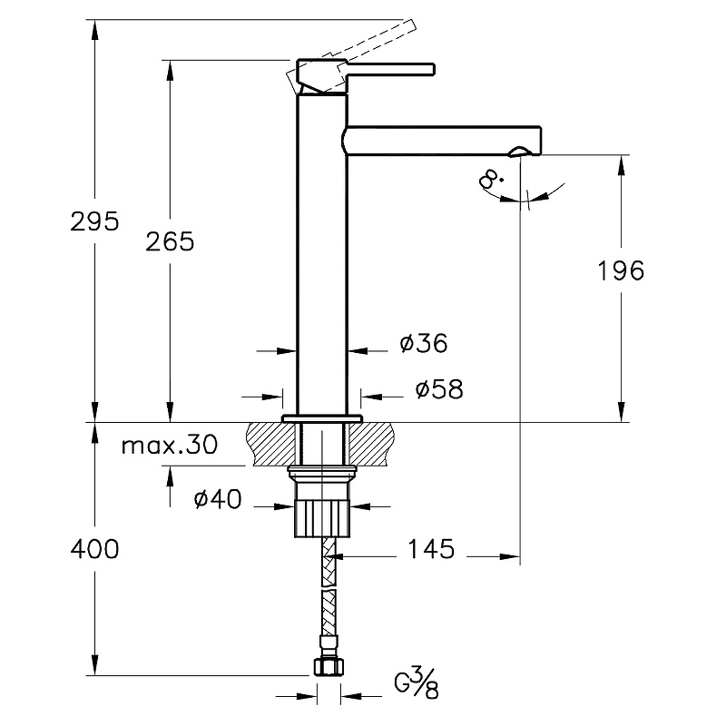 Высота излива см./мм.