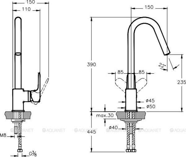 Высота излива см./мм.