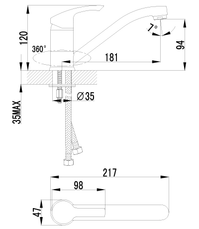 Смеситель; гибкая подводка. |