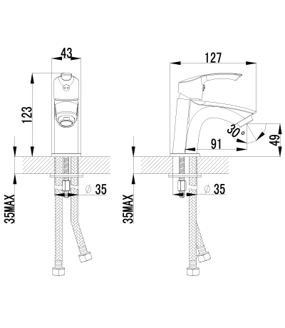 Смеситель; гибкая подводка. |