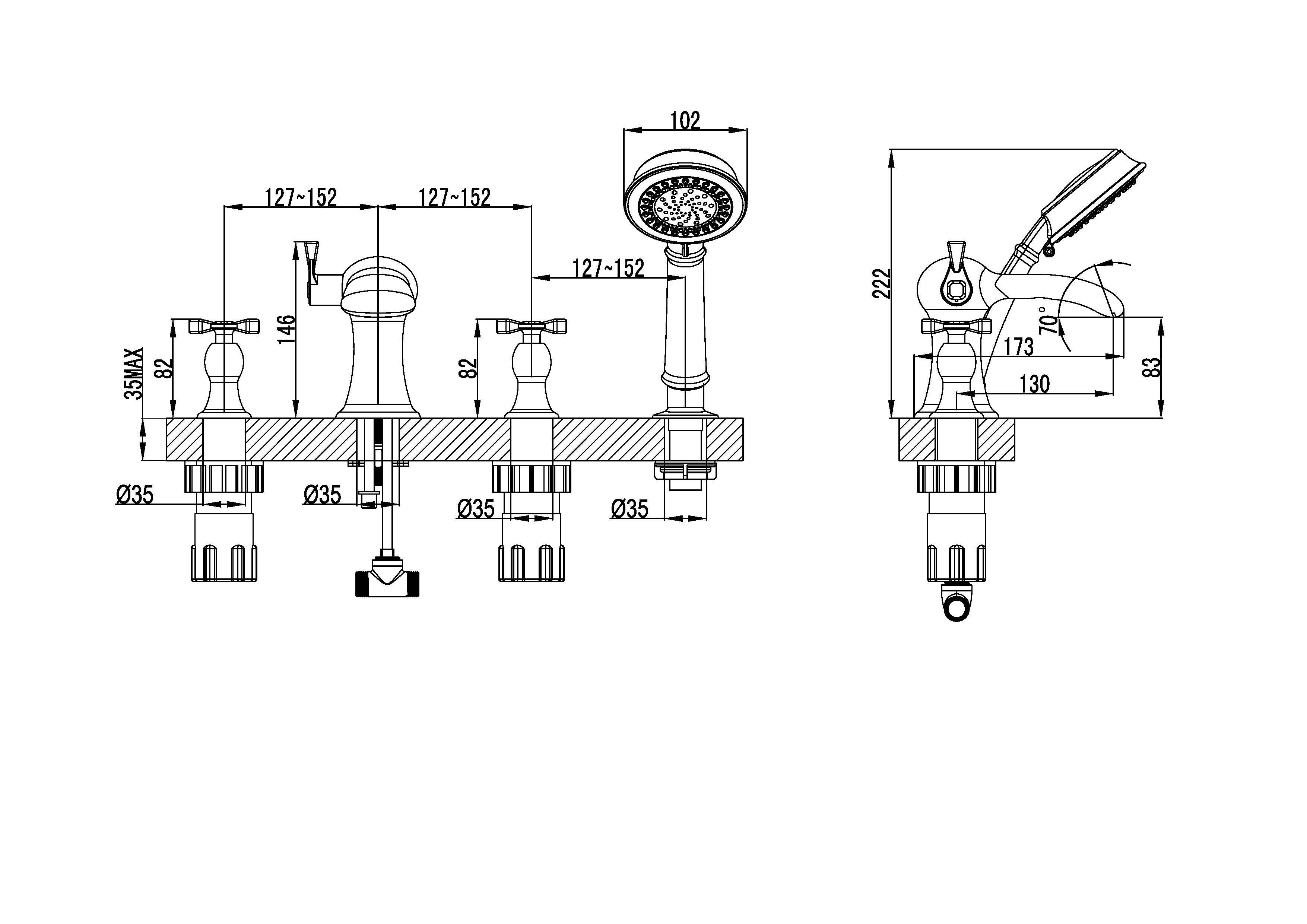 Смеситель - 1 шт Душевая лейка - 1 шт Душевой шланг - 1 шт |