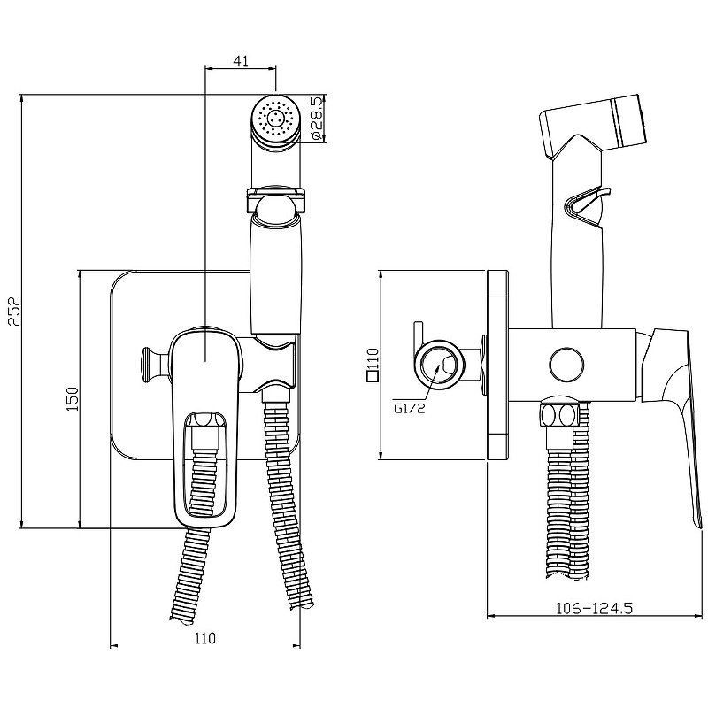Душевой шланг, Гигиеническая лейка, Держатель для лейки, Смеситель |