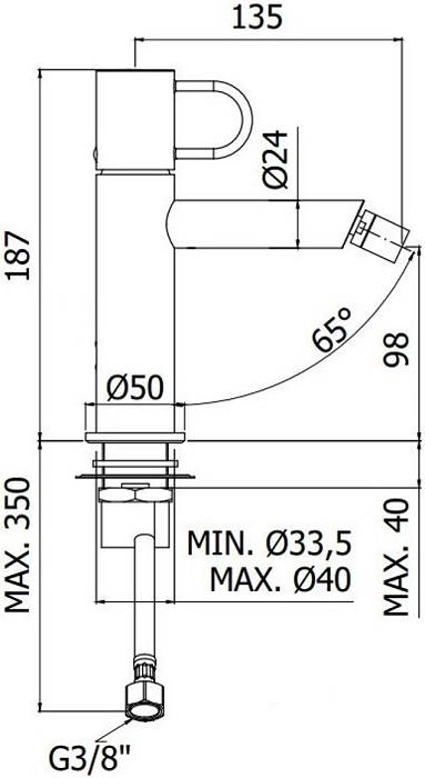 Длина излива см./мм.