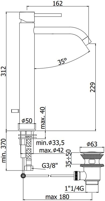 Длина излива см./мм.