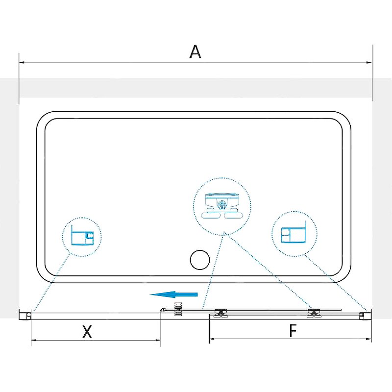 Дверь имеет общую высоту 1850 мм, что подходит для большинства стандартных ванных комнат. Двойные регулируемые ролики обеспечивают плавное и бесшумное открытие и закрытие двери. Благодаря роликовому подшипнику дверь двигается легко и плавно.