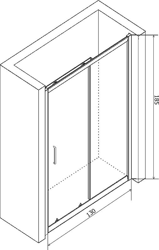 Высота общая данной душевой двери составляет 1850 мм, что обеспечивает комфортное использование для пользователей различных ростов.
