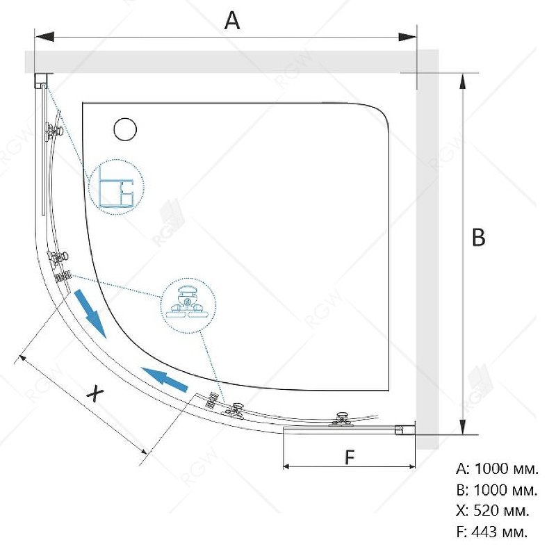 Первым преимуществом душевого уголка RGW CL-54B является толщина стекла в 5 мм, что делает его прочным и долговечным. Вторым преимуществом является полукруглая форма душевого угла, которая идеально подходит для размещения в углу ванной комнаты и способствует максимальному использованию имеющегося пространства.