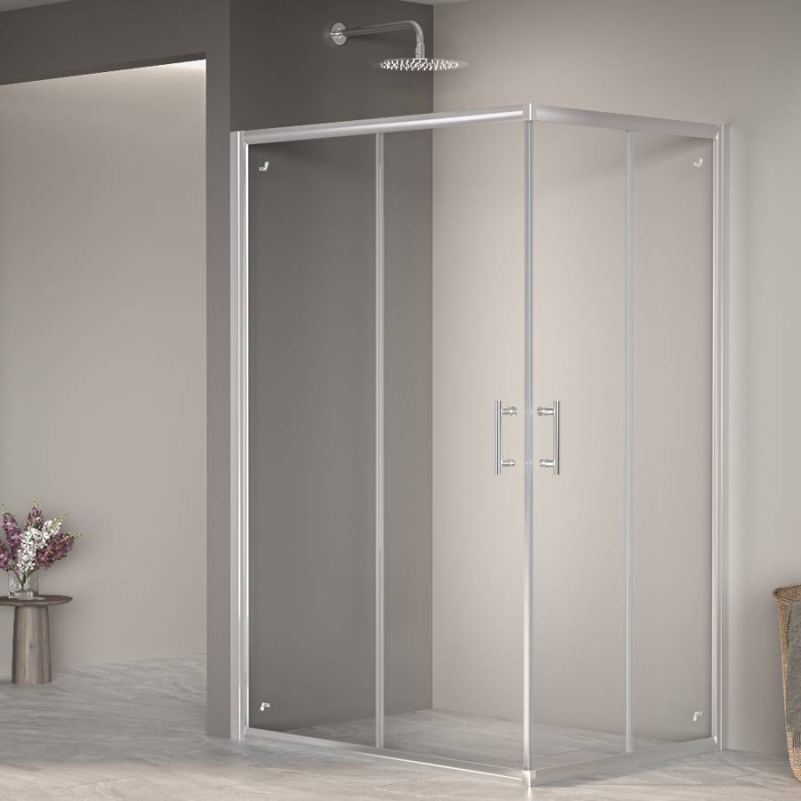Двойные регулируемые ролики позволяют легко открывать и закрывать двери душевого уголка, а конструкция раздвижных дверей обеспечивает экономию места в ванной комнате. _x000D_