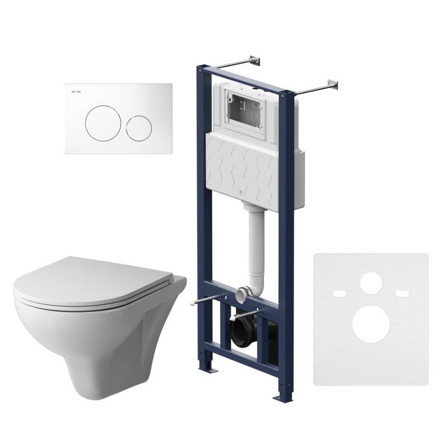 Инсталляция - 1 шт. Чаша унитаза - 1 шт. Крышка-сиденье - 1 шт. Кнопка смыва - 1 шт. Панель шумоизоляционная - 1 шт. |