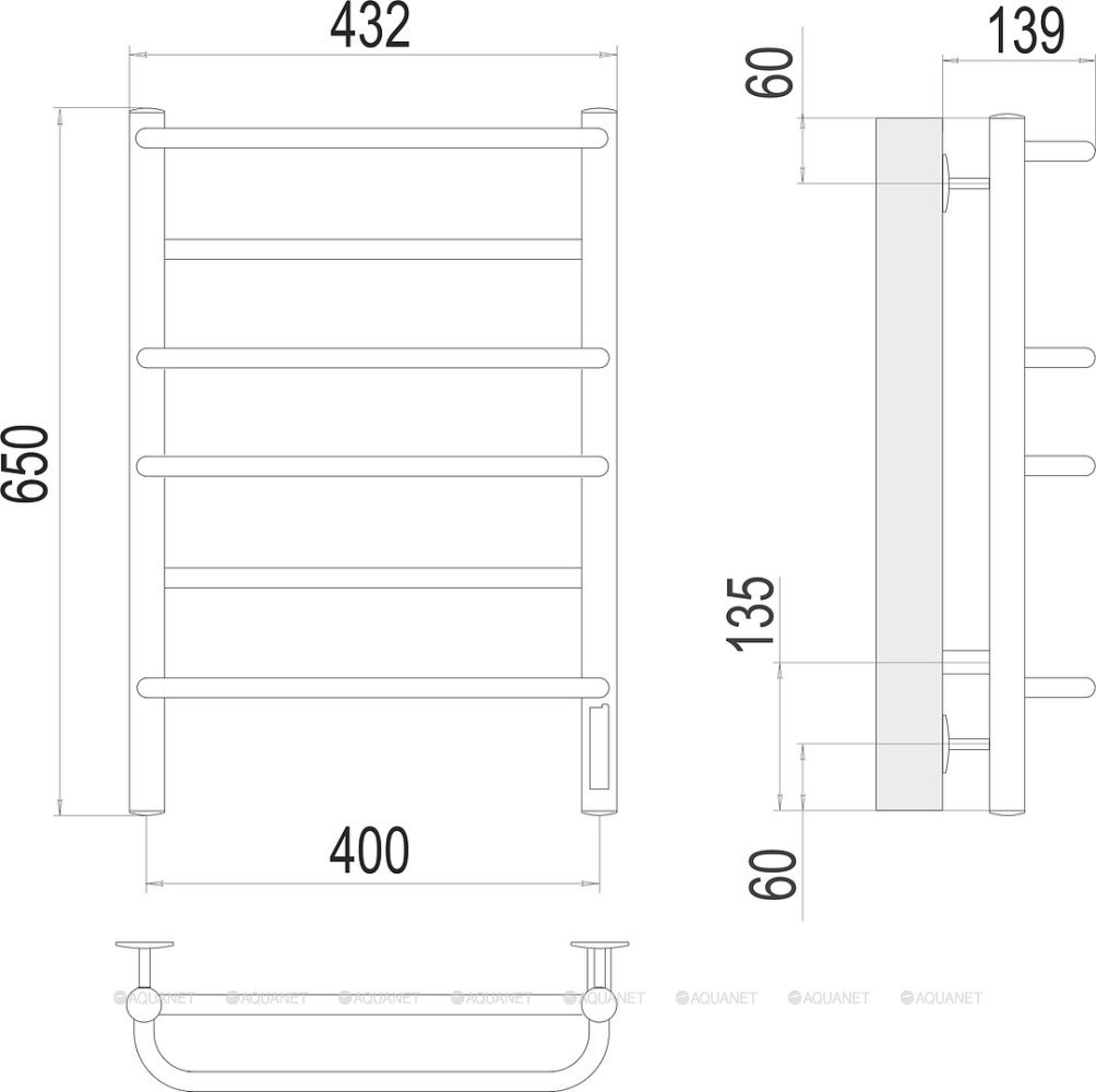 Полотенцесушитель - 1 шт.,Терморегулятор - 1 шт.,Комплект креплений - 1 шт.,Электрический кабель - 1 шт. |