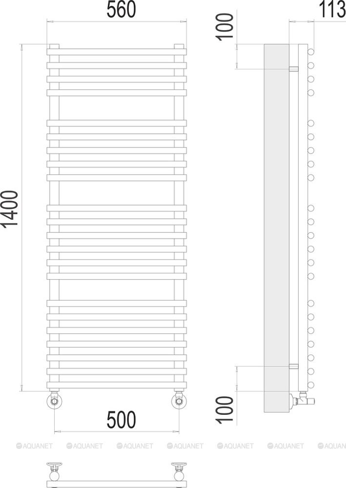 Полотенцесушитель - 1 шт.,Комплект креплений - 1 шт.,Комплект декоративных заглушек - 1 шт.,Кран Маевского - 1 шт.,Эксцентрик - 2 шт.,Отражатель - 2 шт.,Вентиль - 2 шт., |
