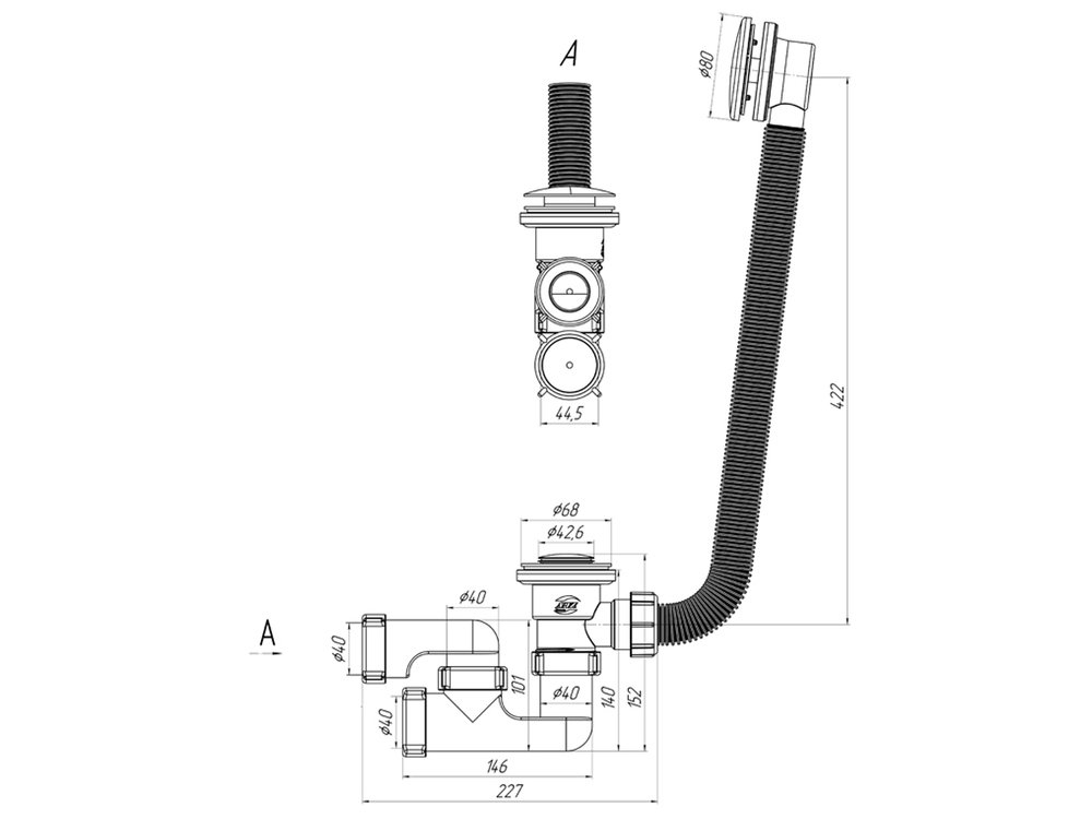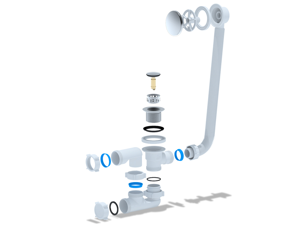 Донный клапан клик-клак, слив-перелив, сифон П-образный с ревизионной гайкой |