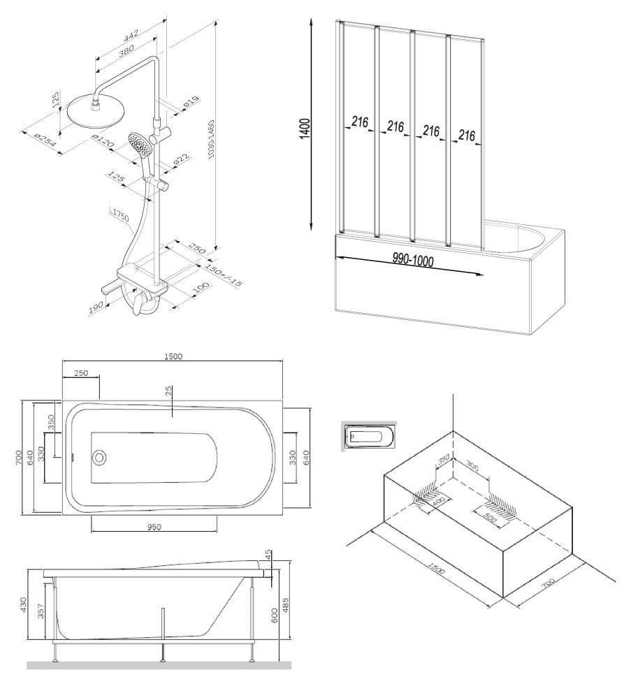 Каркс, шторка для ванны, душевая система |